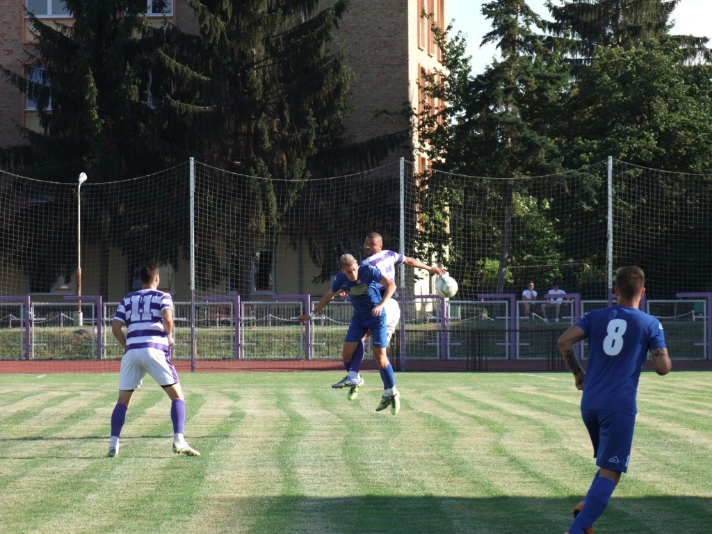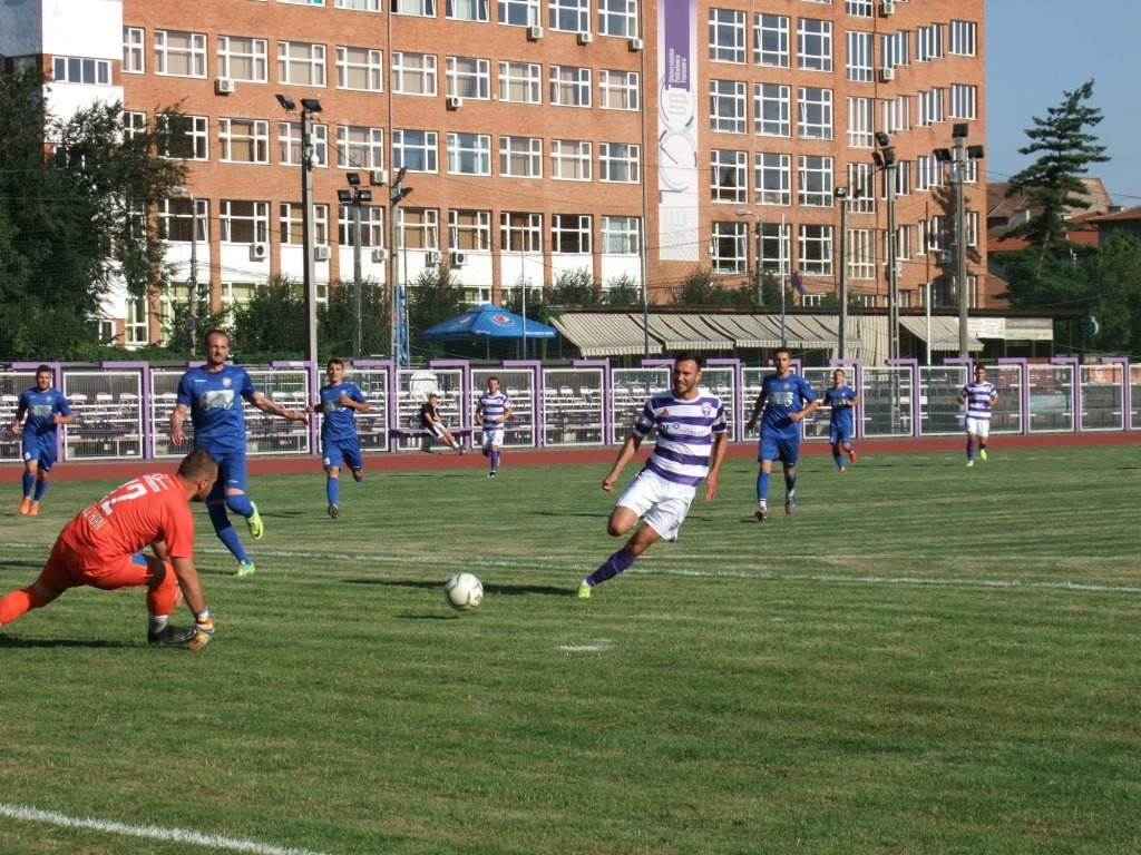 În efectiv redus ASU Poli a început bine jocul cu Ezerişul, dar nu a marcat la primele ocazii, ale lui Manea şi Mera. Oaspeţii, promovaţi recent în C în ineditul baraj în trei din această vară, au fost şi ei periculoşi după pauza de hidratare, Borbei reuşind să scoată cu piciorul o minge trimisă periculos din apropiere. Apoi, gazdele au deschis scorul după un penalty. Execuţia lui Axente a fost parată în minutul 40, dar atacantul a urmărit mingea respinsă şi l-a învins pe Birăescu din apropiere.