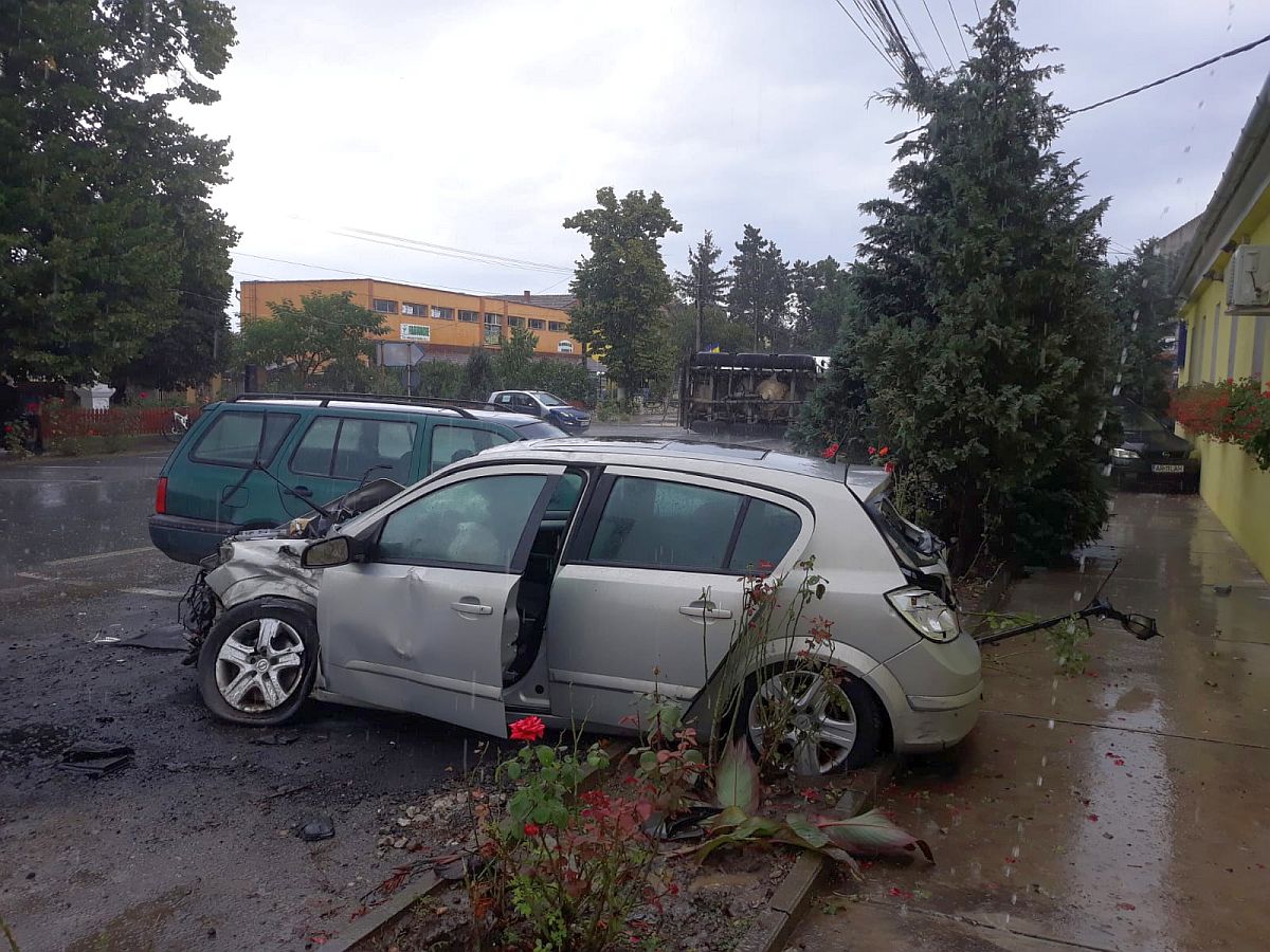 „O femeie de 36 de ani, din Arad, în timp ce conducea un autoturism dinspre Zărand înspre Ineu, la intersecția cu DJ 792 nu a respectat semnificația indicatorului «Oprire». Autoturismul a pătruns în intersecție, unde a intrat în coliziune cu un ansamblu format din autoutilitară și semiremorcă, condus de un bărbat de 44 de ani, din județul Bihor. În urma impactului, ansamblul a intrat în derapaj, intrând în coliziune cu trei autovehicule parcate în fața primăriei localității Seleuș. Evenimentul rutier s-a soldat cu rănirea ușoară a conducătoarei auto și a doi copii minori, de 3 și 5 ani, pasageri pe bancheta din spate a autoturismului. Victimele au fost transportate la spital în vederea acordării de îngrijiri medicale. În urma testării cu aparatul etilotest, rezultatul a fost zero în ambele cazuri. În cauză se continuă cercetările sub aspectul săvârșirii infracțiunii de vătămare corporală din culpă”, a transmis IPJ Arad, conform aradon.ro.