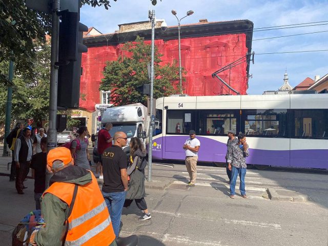 Circulația tramvaielor a fost blocată temporar la Bega Mică, în zona centrală a Timișoarei, duminică dimineața, după ce un tramvai a lovit o mașină de marfă.