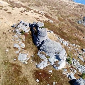 Pe Muntele Mic, la o înălțime de peste 1.600 de metri, în apropierea izvorului Vâlsan, se află un adevărat complex megalitic, alcătuit din două stânci despărțite de un coridor prin care se poate pătrunde într-o grotă cu o lungime de aproximativ trei metri și lată de doi metri și jumătate, dar a cărei intrare este parțial blocată de stânci căzute din tavan.