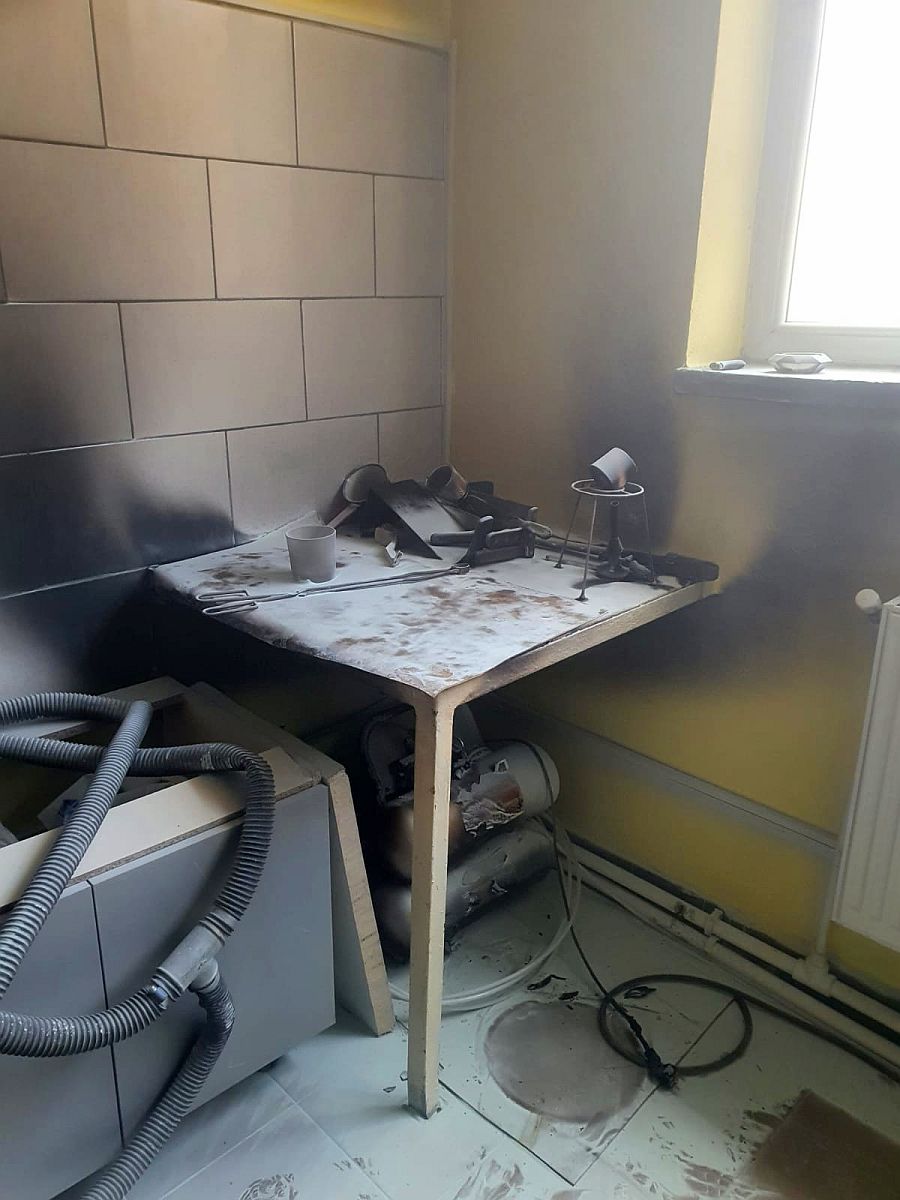 Conform ISU Caraș-Severin, „a luat foc compresorul electric și piese de mobilier dintr-un laborator de la etajul 1 al clădirii, cu degajare mare de fum, personalul unității autoevacuându-se”.