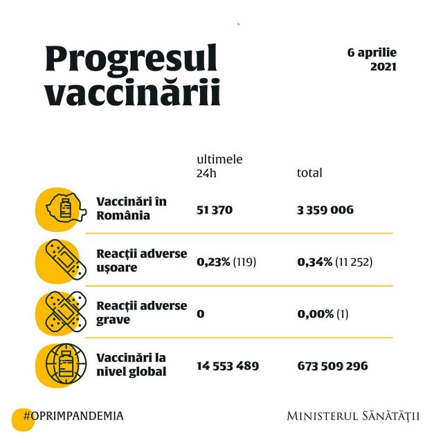 De la începutul campaniei de vaccinare până ieri, în România au fost administrate aproape 3.360.000 de doze de vaccin anti-COVID.