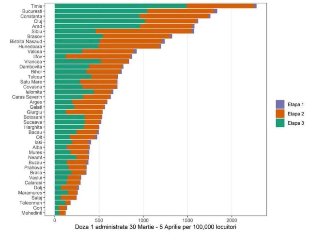 Prefectul Zoltan Nemeth a anunțat, astăzi, că în momentul de față, județul Timiș este lider pe plan național la numărul de vaccinări efectuate în perioada 30 martie – 5 aprilie raportat la 100.000 de locuitori.