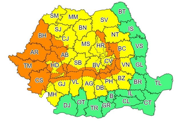 Codul portocaliu este valabil începând de astăzi, de la ora 17:00, până vineri la ora 11:00.