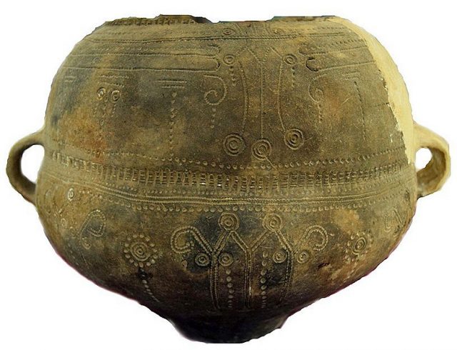 Este o urnă cu două nivele, fără gât, dar cu două toarte, și este ornamentată cu motive incizate specifice culturii Žuto Brdo-Gârla Mare din epoca bronzului, care aparține grupei răsăritene a complexului câmpurilor de urne funerare, fiind răspândită în sudul Banatului, nord-estul Serbiei, sud-vestul Olteniei și nord-vestul Bulgariei. A fost descoperită în 1979 de un elev, în urma scăderii nivelului Dunării, alături de alte cinci vase similare. După doi ani, au fost începute săpături arheologice în necropola de incinerație de la Liubcova.