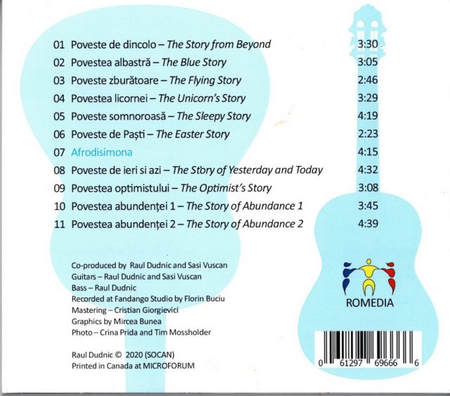 „Piesele sunt făcute pe și pentru chitară. Am optat pentru un sunet mai la zi după ce am colaborat mai mulți ani cu Sași Vușcan, fost Blazzaj, Jais, Burning Table. Fiind o generație mai tânără și fiind priceput în sintetizatoare și procesoare a croit haine noi pentru piese. Așa cum singur nu aș fi făcut-o. Tot ce e sintetizator, tobe, chitare procesate poartă semnătura lui Sași. Am tras vocea în studiul lui Florin Buciu un alt canadian din Timișoara. Masterizarea a făcut-o Cristi Giorgevici, ex Neurotica în studioul căruia am tras și chitările acustice și părțile de bass. Am inclus și două piese speciale pentru a marca două momente speciale. «Poveste somnoroasă» este o piesă a cărei muzică a compus-o Adi Dinu, piesă pe care am cântat-o împreună ani la rând în formula duo. A doua este «Povestea de ieri și de azi», piesă pe care am compus-o pentru Cargo. Fără mari pretenții și așteptări, albumul a apărut datorită unei ambiții personale de a înregistra un CD cu piese proprii, cu vocea proprie. Grafica albumuli e croită de Mircea Bunea, nașul nostru de cununie iar poza coperții provine de la prietena Crina Prida, fotograf extraordinar care se încăpățânează încă a crede că e medic stomatolog“, a mai spus Raul Dudnic despre acest album.