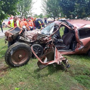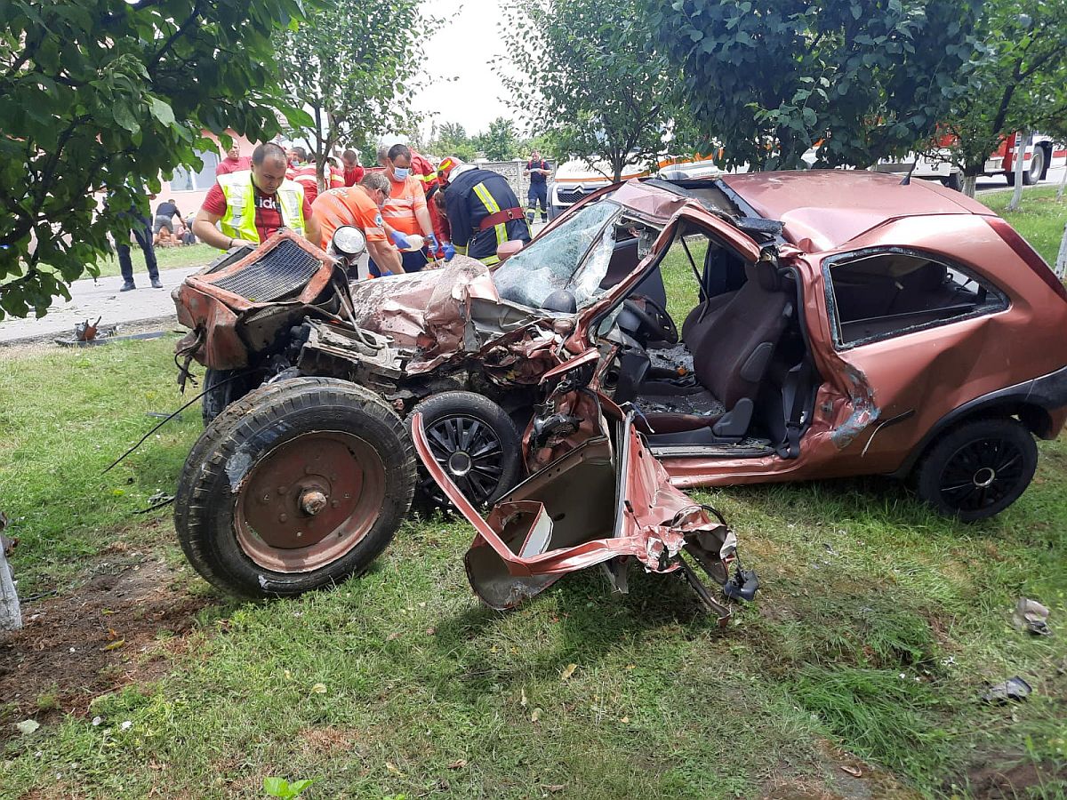 Un grav accident rutier s-a produs în această după-amiază pe DJ 709B din județul Arad, la ieșirea din localitatea Grăniceri spre localitatea Șiclău, unde o mașină și un tractor s-au ciocnit violent. În urma impactului, două victime au rămas încarcerate, iar circulația a fost blocată complet.