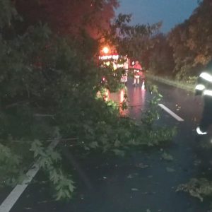 Cei de la ISU Timiș au degajat un copac căzut pe DN 68 A, la ieșire din comuna Traian Vuia, precum și o creangă de pe liniile de tramvai, în Timişoara, pe strada 1 Decembrie.