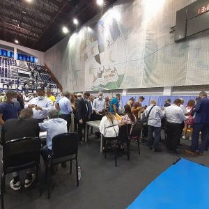 În apropierea clădirii sunt prezente, pentru orice eventualitate, o mașină de pompieri, o Ambulanță, dar și mai multe mașini ale unei firme private de securitate din Arad, angajată ca să se asigure că lucrurile se vor derula fără incidente, spre deosebire de alegerile cu scandal de la PNL Timișoara. Intrarea liberalilor cu drept de vot în sală a decurs de această dată fără probleme, la porți fiind disponibile măști de protecție și chiar teste COVID-19. În sală, chiar dacă tuturor li s-a cerut să poarte masca, nu toți o și fac.