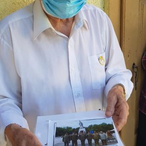 Înconjurat de familie, Constantin Călina, veteran de război, a primit vizita surpriză a reprezentanţilor administraţiei publice locale.