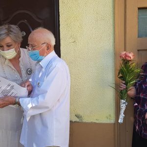 Cei de la Direcţia de Asistenţă Socială a Municipiului Timişoara i-au bătut la ușă. Cu sprijinul familiei, reprezentanţii DASTM au reuşit să-l surprindă pe sărbătorit. Un tort aniversar a completat urările de La mulţi ani, iar o diplomă pregătită special pentru acest eveniment, semnată de primarul Dominic Fritz, va sta mărturie peste ani acestei aniversari speciale.