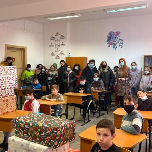 De pachetele pregătite de elevii de la Liceul Teoretic „David Voniga” Giroc au beneficiat copii cu vârste cuprinse între 6 și 15 ani, elevi la Școala Gimnazială din Lenauheim.