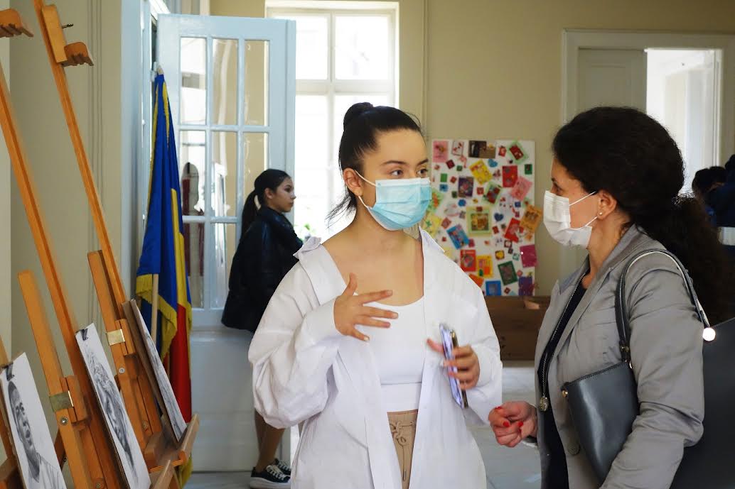 După prezentarea expoziției personale a Ioanei Ghițoaica, prezentată în cursul lunii trecute, proiectul continuă cu cea semnată de Ana-Maria Staicu, elevă în clasa a X-a, a cărei nouă viziune picturală a fost apreciată și încurajată de profesorii liceului, cu prilejul vernisajului.