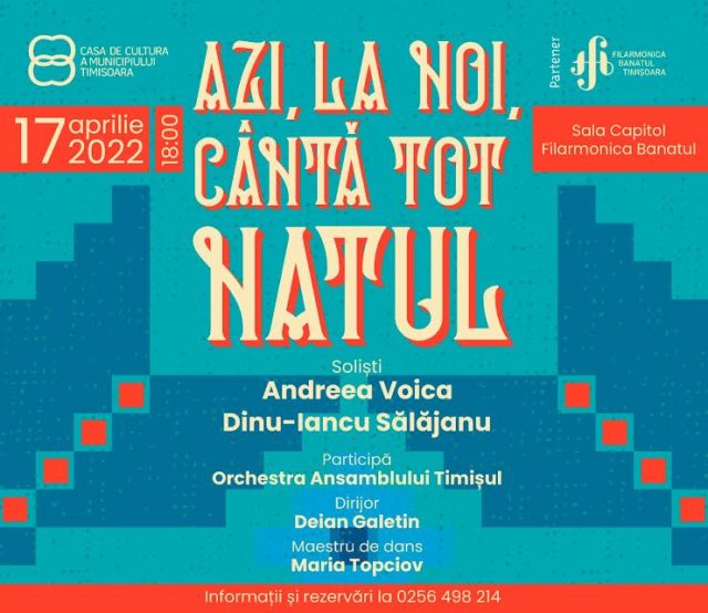 În 17 aprilie, la ora 18:00, ansamblul „Timiș” va susține în sala Capitol spectacolul „Azi la noi cântă tot natul”, dedicat sărbătorii Floriilor, cu participarea instrumentiștilor, a dansatorilor de la ansamblul „Timișul” și a soliștilor Andreea Voica și Dinu-Iancu Sălăjanu. Accesul se face pe bază de invitații, puse la dispoziția publicului la Casa de Cultură (Str. Miron Costin nr.2), în perioada 7 – 17 aprilie.