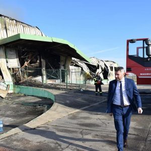 Fosta fabrică de țigări a fugarului Zaher Iskandarani, locul incendiului unde au acționat 78 de pompieri din județele Timiș și Arad, a fost vizitată vineri dimineață din nou de prefectul Mihai Ritivoiu.