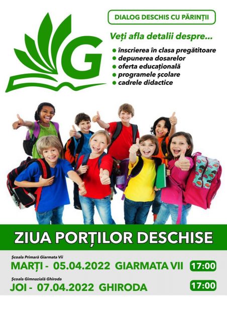 Prin Ziua Porților Deschise, Primăria Ghiroda își propune să promoveze rezultatul acestor demersuri prin care, alături de eforturile Școlii Gimnaziale Ghiroda, le-a oferit copiilor cele mai bune condiții pentru învățare.
