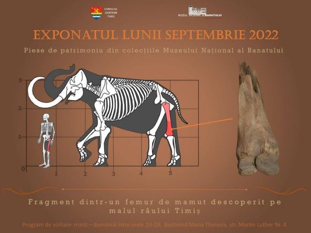 Muzeul Național al Banatului din Timișoara expune în această lună un fragment fosilizat dintr-un femur de mamut descoperit pe malul râului Timiș, în dreptul localității Bazoș, care a fost donat muzeului de regretatul arheolog și muzeograf Alexandru Szentmiklosi. Impresionantele animale care depășeau cu puțin în înălțime mărimea unui elefant, aparțin ordinului Proboscidea (animale cu trompă), și sunt încadrate în aceeași familie cu elefanții actuali. Mamuții, originari din Africa, au ajuns în Europa în urmă cu aproximativ 3,5 milioane de ani, fosilele europene indicând prezența a patru cronospecii, din pelistocen până în holocen.