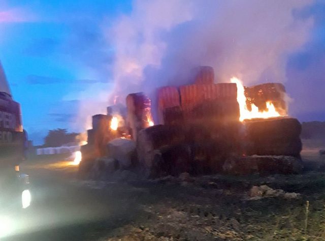 Incendiul se manifestă cu flacără deschisă la aproximativ 500 de baloți de paie. Nu sunt înregistrate victime”, a transmis ISU Arad.