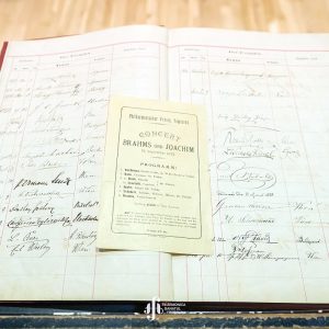 Notabilă este una dintre scrierile lui Brahms către Clara Schumann despre impresiile poposirii pe meleagurile noastre, ceea ce a fost un bun prilej pentru o imensă publicitate făcută Societății filarmonice din Timișoara: „(…) Călătoria noastră a fost destul de drăguță și amuzantă. Pe o vreme splendidă, călătorind printr-o țară străină, deseori foarte interesantă și frumoasă, pe lângă aceasta să dai din când în când un concert și să bei cu toată lumea, așa se poate trăi! Astfel de turnee aș face de mai multe ori! Între concerte să ai timp să cunoști regiunea cu locuitorii ei… La gară ești așteptat de primar și directori, faci cunoștință cu lumea selectă și oamenii îți oferă numai bunătăți și te primesc cu deosebită ospitalitate.