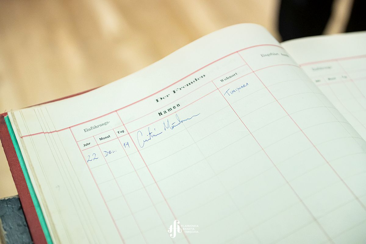 După restaurare, filarmonica a reluat tradiția de a invita personalități importate care trec pragul instituției să semneze în Cartea de Aur. „Astfel, cu ocazia revenirii în Timișoara, maestrul Cristian Măcelaru ne-a făcut onoarea de a semna în Carte, după concertul susținut miercuri, 14 decembrie, pe scena Salii Capitol”, a mai transmis Filarmonica „Banatul”.