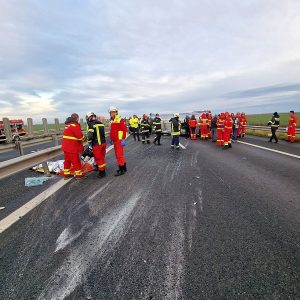 Accident rutier în această după-amiază, pe autostrada A1, pe sensul de mers de la Nădlac spre Arad. Din primele informații, un microbuz în care se aflau aproximativ 11 persinae s-a răsturnat.