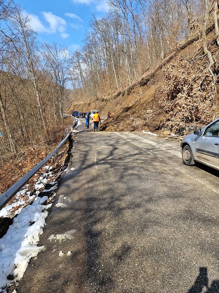 Alunecare de teren în această după-amiază, pe o șosea din zona localității hunedorene Vorța. Din fericire, nu au fost înregistrate victime.