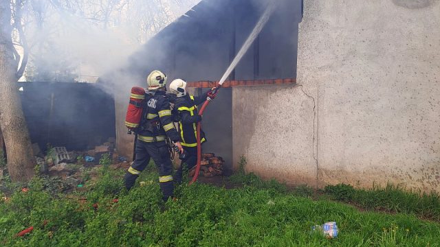 Incendiu în această după-amiază, la o casă părăsită aflată pe Aleea Dezna, în Arad. La fața locului s-au deplasat pompierii militari ai Detașamentului Arad cu două autospeciale de stingere cu apă și spumă, o autospecială de primă intervenție și comandă și un echipaj SMURD.