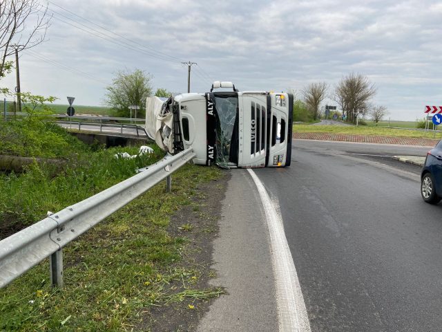Tirul s-a răsturnat între localităţile Andrei Şaguna şi Şimand, blocând parţial sensul de mers spre Oradea dinspre Arad.