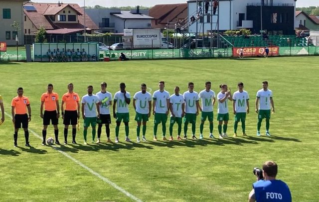 Jucătorii lui Cosmin Stan au intrat pe teren cu tricouri care au format un mesaj pentru suporterii lor: „Vă mulţumim!”. Echipa de la nord de Timişoara rămâne astfel şi singura timişeană din eşalonul secund după ce Ripensia şi Politehnica au picat de pe ultimele poziţii din grupele lor de play-out. Roş-galbenii au stat în această ultimă rundă, în timp ce alb-violeţii au fost umiliţi acasă de Metaloglobus, scor 0-5 (0-0).
