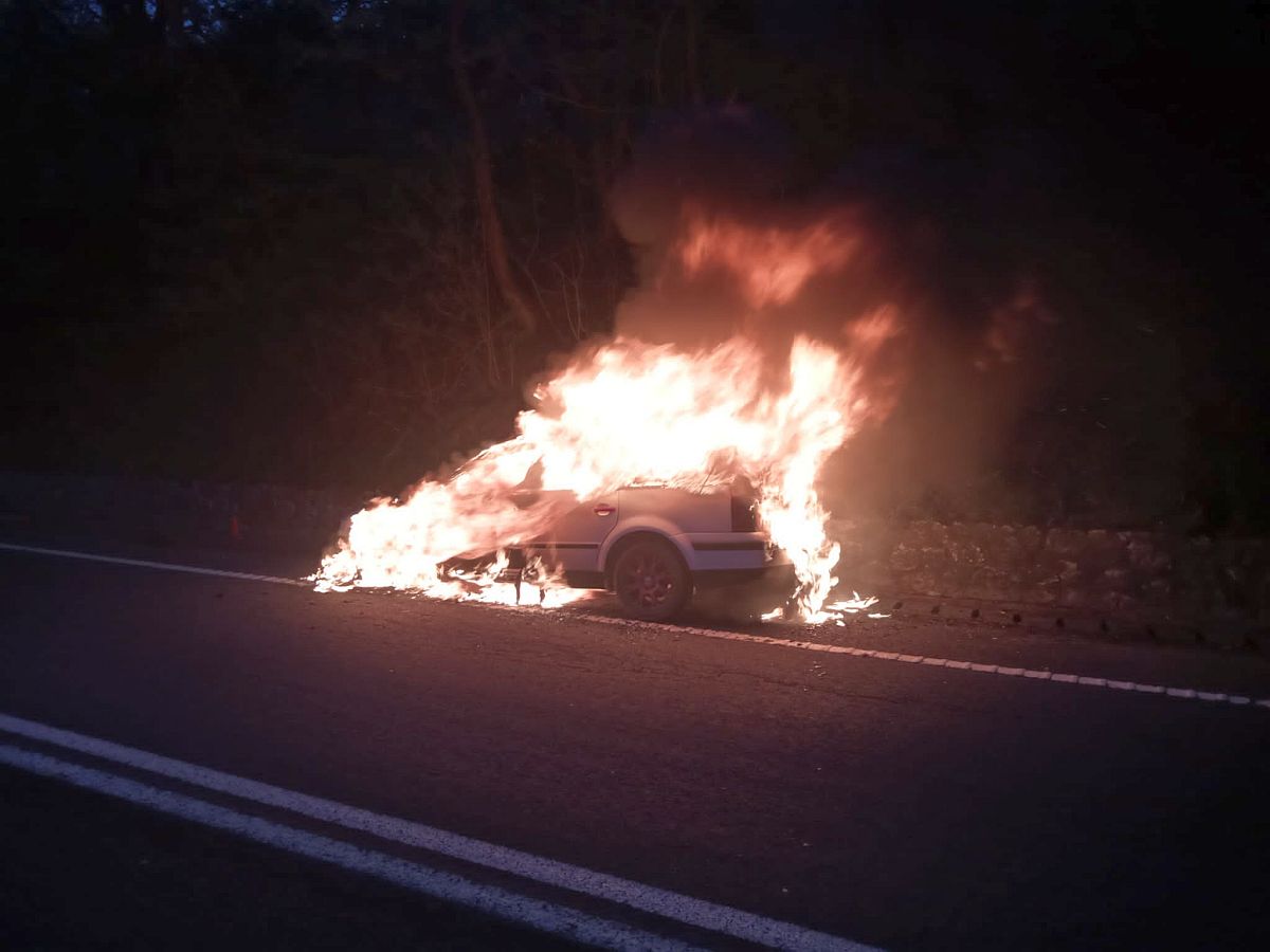 „Conducătorul auto se deplasa către Petroșani și a oprit autoturismul pentru că interiorul mașinii începuse să fie cuprins de un fum dens. În urma unui apel transmis la 112, la ora 20:30, referitor la un autoturism curpins de flăcări, pompierii din Petroșani au sosit de urgență la locul incidentului și au acționat pentru stingerea incendiului. Arderea a fost generalizată, autovehiculul fiind distrus în întregime. Nu au fost victime, circulația a fost întreruptă pe un sens timp de 30 minute, iar cauza producerii incendiului a fost un scurtcircuit la instalația electrică a autoturismului”, a transmis ISU Hunedoara.