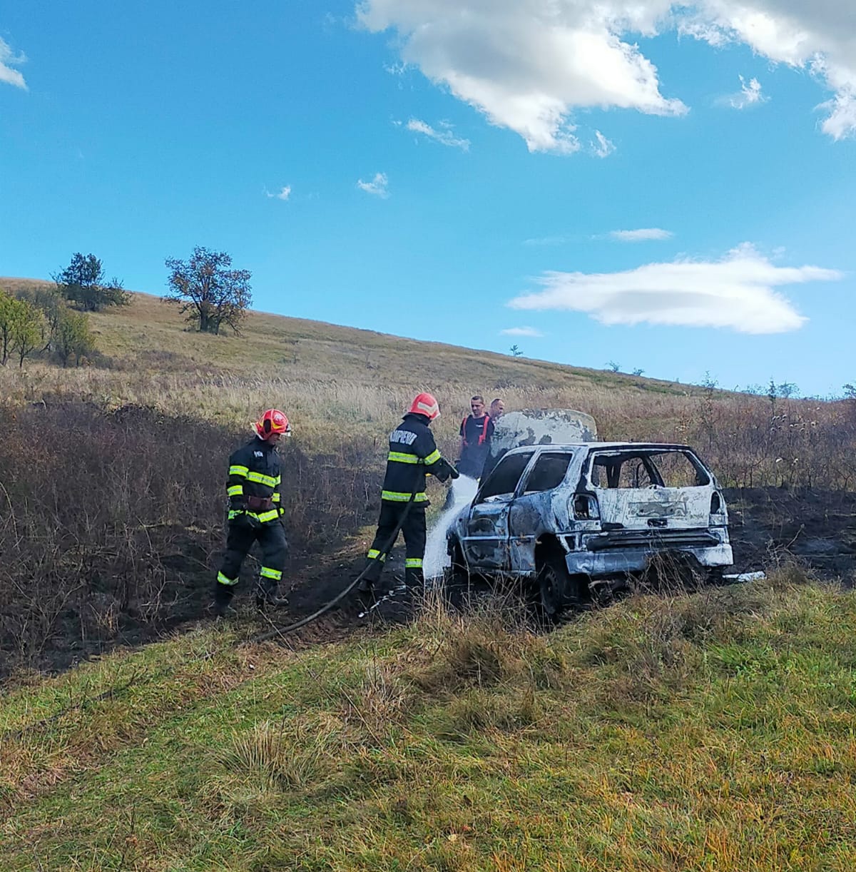 Salvatorii de la Detașamentul Hunedoara au intervenit cu o autospecială de stingere cu apă și spumă și un echipaj SMURD. La fața locului echipajele operative au constatat faptul că incendiul se manifesta generalizat, la întregul autoturism, fiind cuprinsă de flăcări și vegetația uscată din jur, pe o suprafață de circa 200 de metri pătrați.