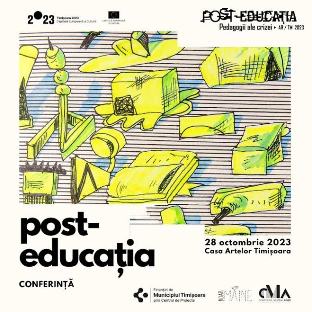 Asociația „Doar mâine” din Arad organizează sâmbătă, 28 octombrie, de la ora 10.00, conferința „Post-Educația”, care va avea loc în sala StudioArt de la Casa Artelor, aflată pe strada A. Pacha, ca parte a Programului Cultural Național „Timișoara – Capitală Europeană a Culturii în anul 2023”.