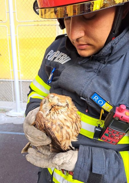 Operațiune de salvare mai puțin obișnuită pentru pompierii din cadrul Detașamentului Petroșani. Aceștia au fost solicitați să intervină în localitatea hunedoreană Vulcan pentru salvarea unui pui de cucuvea care a rămas prins, la înălțime, în plasa care împrejmuiește un teren de minifotbal.