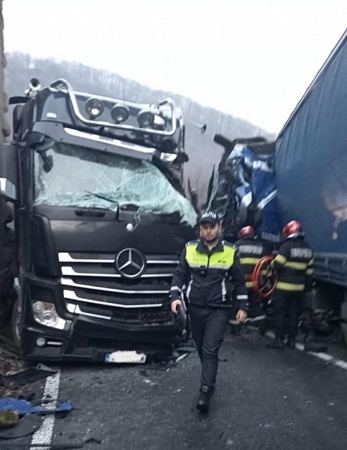 „Echipajul de descarcerare a acționat imediat pentru extragerea celui de al doilea șofer, care a fost preluat de echipajul SAJ, în stare de conștiență, în vederea transportării la spital pentru investigații suplimentare. Traficul rutier este blocat pe ambele sensuri de mers„, se arată în finalul comunicatului.