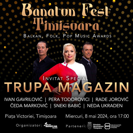 Prima ediție a Banaton Fest Timișoara va avea loc în data de 8 mai, de la ora 17, în Piața Victoriei. Evenimentul este un festival spectaculos cu decernare de premii, având parte de 12 categorii și este organizat de Radio Banat Link în parteneriat cu Casa de Cultură a Municipiului Timișoara și Primăria Municipiului Timișoara. Printre interpreții care vor susține recitaluri la acest festival se numără trupa Magazin, Neda Ukraden, Ivan Gavrilovic, Rade Jorovic, Ceda Markovic și Sneki Babic.