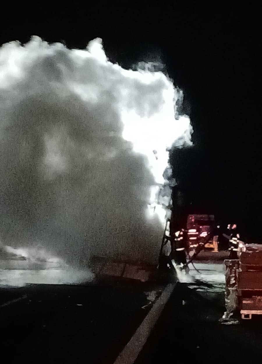 Incident grav în cursul nopții trecute pe autostrada A1, pe raza comunei Orțișoara, din județul Timiș. Mai multe mașini au fost implicate într-un accident iar unul dintre autoturisme a ars aproape complet.
