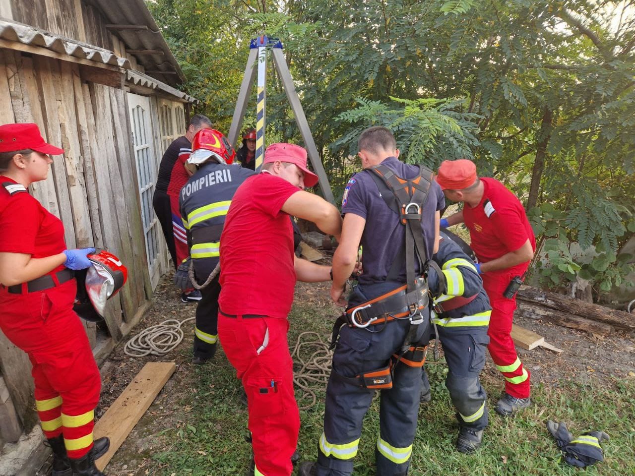 Femeie căzută într-o fântână adâncā de 15 metri, salvată de pompierii timişeni