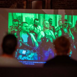 Fotografiile au imortalizat orașe distruse, răniți, oameni chinuiți și cuprinși de frică, mulți cu viețile distruse pentru totdeauna. Imaginile expuse provin din țări aflate în război în ultimele trei decenii, făcute de doi fotografi extrem de curajoși, Vadim Ghirda, prezent pe fronturile din Iugoslavia în anii ʹ90, Transnistria, Israel, Irak, Gaza și Ucraina, și Larisa Kalik, o poetă născută în Transnistria acuzată de extremism de autoritățile de la Tiraspol și mutată în Ucraina, care urmărește acum războiul pe frontul ucrainean. Expoziţia va fi deschisă până în 15 septembrie a.c.