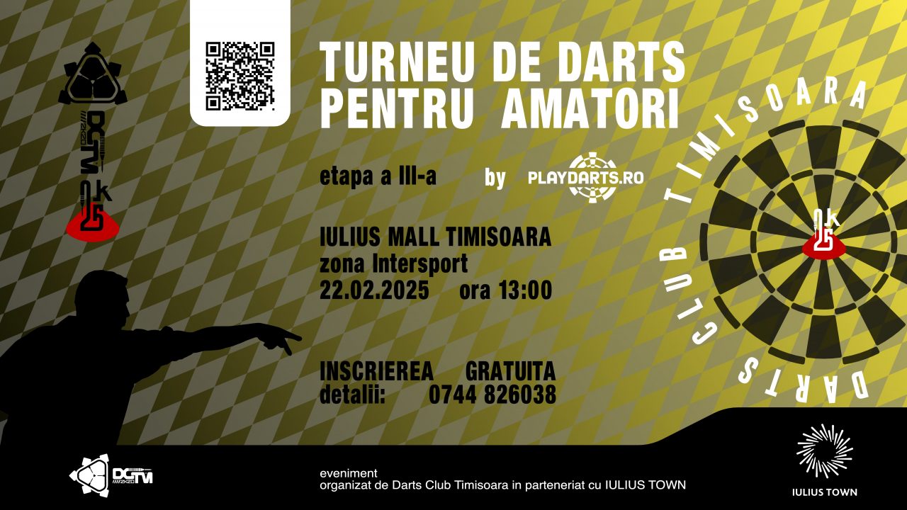 Sâmbătă, în zona Intersport, de la ora 13:00, are loc cea de-a treia ediție a Turneului de Darts pentru Amatori, unde sunt așteptați toți pasionații, indiferent de nivelul de pregătire.