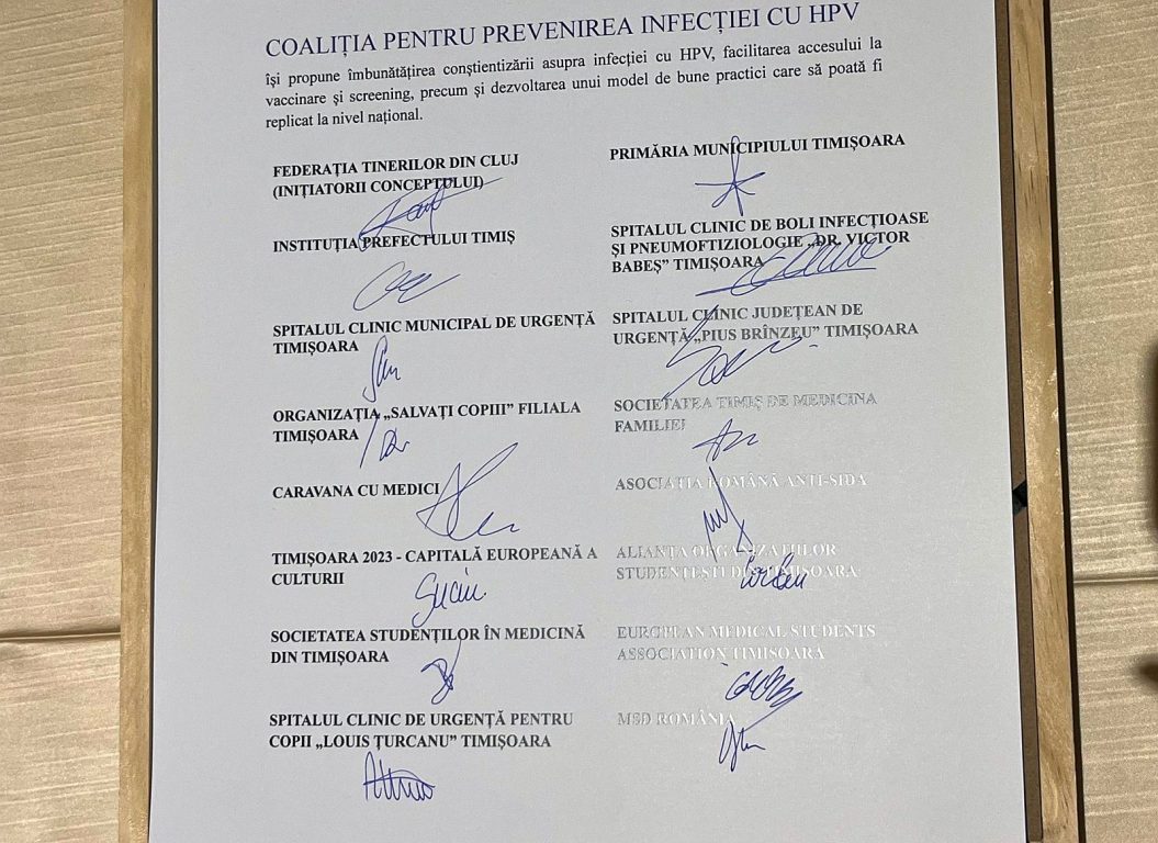 Evenimentul a fost marcat de semnarea oficială a documentului de constituire a Coaliției pentru prevenția infecției cu HPV, urmată de o dezbatere tematică intitulată „Vaccinarea salvează vieți. Realități, mituri și soluții”. Prin această coaliție multisectorială, Timișoara își propune să unească instituții publice, universități, unități medicale, organizații neguvernamentale și structuri de tineret într-un demers comun dedicat informării și prevenției.