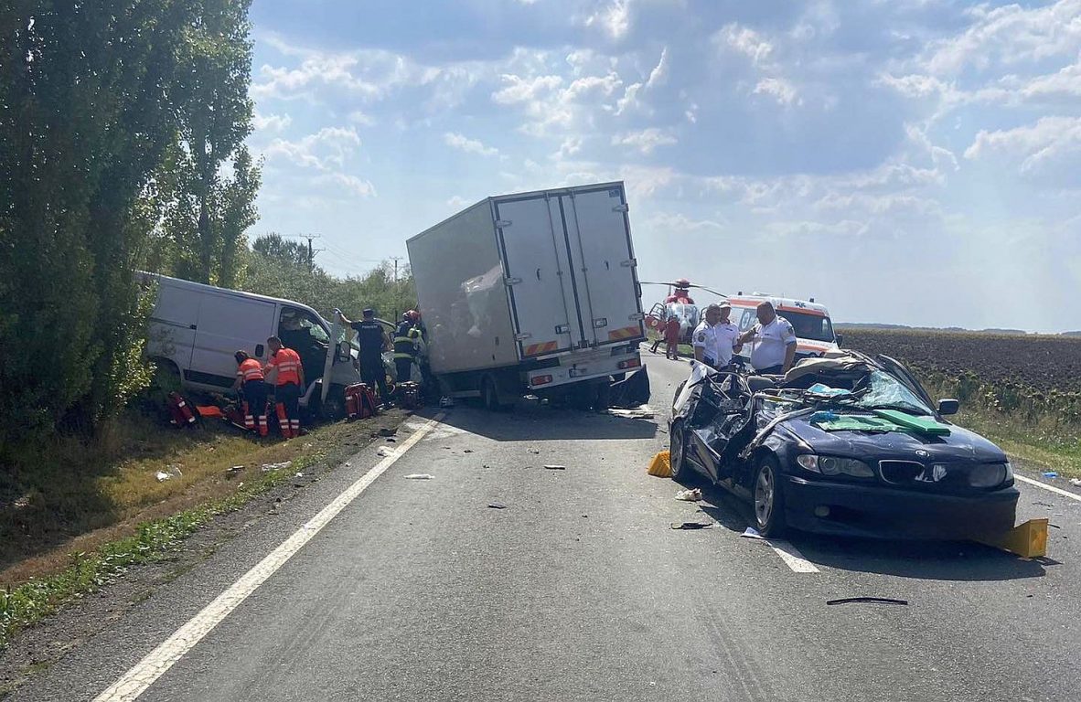 Polițiștii au fost alertați în jurul orei 13:20 și au găsit la fața locului un scenariu dramatic. Potrivit ISU Arad, din cele șase persoane implicate, una, din nefericire, prezenta leziuni incompatibile cu viața.