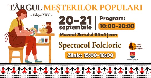La sfârșitul acestei săptămâni, în 20 și 21 septembrie, Muzeul Satului Bănățean găzduiește cea de-a XXV-a ediție a Târgului Meșterilor Populari, eveniment de tradiție anual, ce reunește expoziții cu vânzare, ateliere și demonstrații meșteșugărești. De un sfert de secol, la târg vin zeci de meșteri populari din toate colțurile țării – din Banat, Bucovina, Maramureș, Oltenia, Ardeal și nu numai – oferind vizitatorilor prilejul de a descoperi și de a cumpăra obiecte autentice populare, realizate manual. Printre acestea se numără ii și costume populare, pălării, cojoace, podoabe, instrumente muzicale, obiecte din ceramică, coșuri împletite, icoane, opinci, linguri și jucării din lemn, precum și multe alte produse care duc mai departe poveștile satului românesc. În ambele zile, vizitatorii vor avea parte de ateliere de meșteri și vor putea discuta cu aceștia despre tradițiile populare.