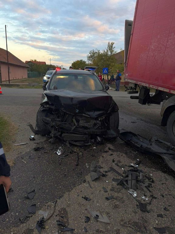 Camionul a intrat în coliziune cu un autoturism condus regulamentar de un bărbat de 57 de ani, care circula dinspre Orțișoara spre Calacea, pe Drumul Județean 693.