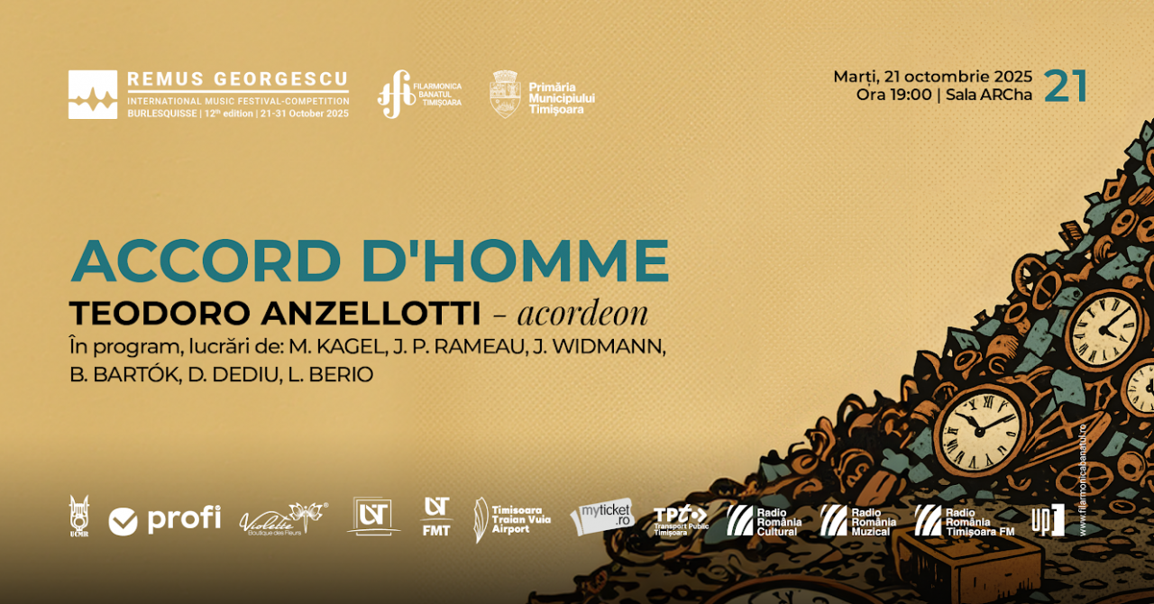 Cea de-a XII-a ediție a festivalului-concurs internațional „Remus Georgescu”, intitulată „Burlesquisse”, va avea loc în perioada 21-25 octombrie, primul eveniment fiind recitalul Teodoro Anzellotti – „Accord d’homme”, care va avea loc în această seară, de la ora 19:00, la sala ARCha a Universității Politehnica și este dedicat iubitorilor muzicii contemporane. Acordeonistul Teodoro Anzellotti susține un recital solo cu lucrări de Mauricio Kagel, Jean P. Rameau, Jörg Widmann, Béla Bartók, Dan Dediu și Luciano Berio.