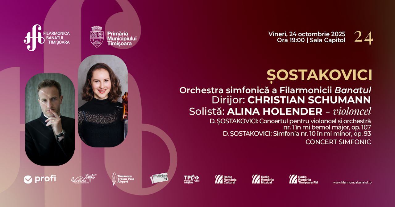 La 50 de ani de la moartea lui Dmitri Șostakovici,o seară va fi dedicată exclusiv creațiilor muzicale ale marelui compozitor rus. Sub bagheta dirijorului Christian Schumann, orchestra simfonică a filarmonicii „Banatul” și violoncelista Alina Holender vor interpreta Concertul pentru violoncel și orchestră nr. 1 în mi bemol major, de D. Șostakovici, urmată de celebra Simfonie nr. 10 a lui aceluiași compozitor, o lucrare profundă și plină de tensiune, care va completa seara.