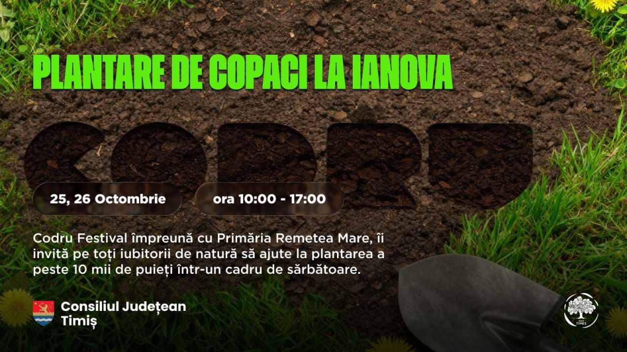 În acest weekend, comuna Ianova din județul Timiș devine gazda unui eveniment inedit care îmbină ecologia cu muzica. Codru Festival, în parteneriat cu Primăria Remetea Mare, organizează o amplă acțiune de plantare a peste 10.000 de puieți, dublată de prima ediție a Festivalului Recoltei.