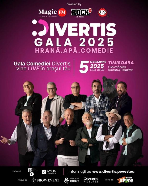 „Apă, hrană, comedie” este spectacolul cu care celebra trupă Divertis, care a făcut deliciul spectatorilor în anii postdecembriști satirizând politicienii de orice culoare și anomaliile societății românești, va fi din nou prezentă la Timișoara, în data de 5 noiembrie, de la ora 19,00, în sala Capitol.