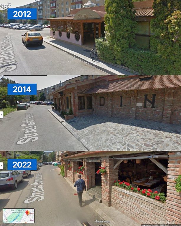 „A două etapă: văzând că nu are nicio intenție să elibereze domeniul public, procedăm la demolare câteva zile mai târziu. Proprietarul cheamă poliția (degeaba), presa, chiriașul se închide în restaurant, dramă mare. Flutură o autorizație nefinalizată din 1998 pentru o terasă de lemn, folosită ca justificare pentru zidăria făcută între 2012-2014, cum se vede în poze. Praf în ochi. A treia etapă e cea cu energie criminală. În dimineața demolării, apare dintr-o dată o nouă încercare de intabulare a extinderii ilegale pe trotuar, cu un truc cadastral: proprietarul schimbă geometria parcelei, desenul retrage ușor laturile ca să poată adăuga metri pătrați acolo unde era trotuarul, fără să schimbe suprafața totală. Iar minunea coruptă se întâmplă: cu doar 1-2 ore după depunerea documentației la oficiul de cadastru, funcționarii o acceptă și schimbă, pe loc, CFul! Clădirea ilegală fără acte se transformă într-una cu acte, iar geometria unui teren al statului român este schimbată fără acordul proprietarului, adică al nostru. Ilegal? Evident! Coincidență sau nu, topometristul care a întocmit documentația prin care a dispărut un trotuar public din acte este fiul vitreg al șefului instituției de cadastru care a aprobat-o, în viteză uluitoare de administrație singaporeză”, a transmis Fritz.