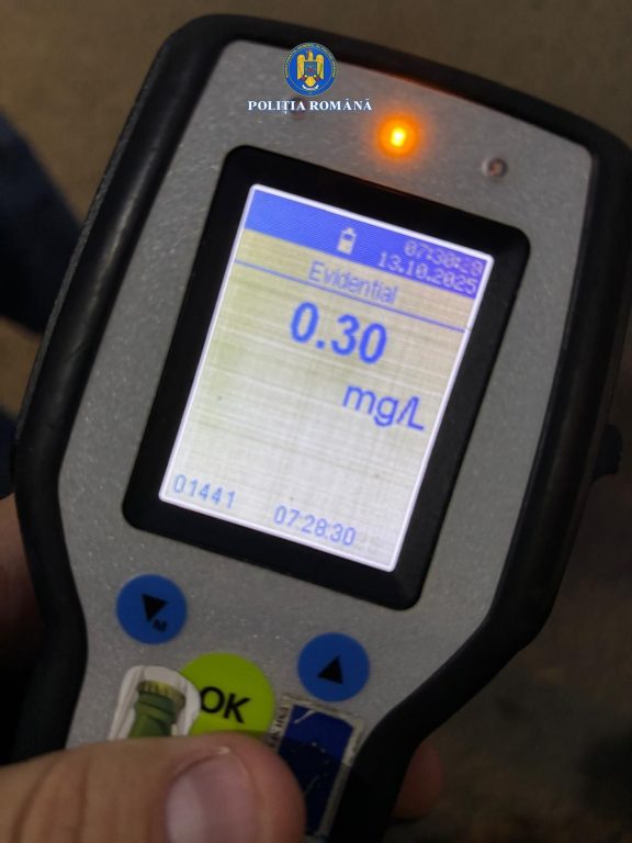 În urma testării cu aparatul etilotest, s-a stabilit că bărbatul de 49 de ani, din Arad, avea o concentrație de 0,30 mg/l alcool pur în aerul expirat.