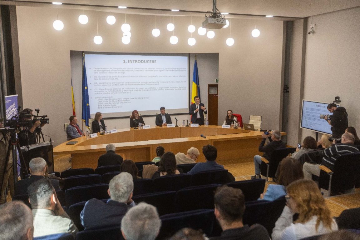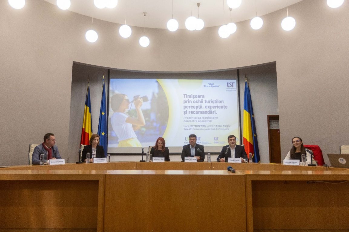 Astăzi, la Universitatea de Vest din Timișoara, amfiteatrul A01, a avut loc conferința de prezentare a studiului cantitativ „Timișoara prin ochii turiștilor: percepții, experiențe și recomandări”.